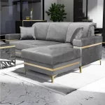 The latest and very fashionable model of the BLACK corner sofa is the perfect choice for people who appreciate modern colors with a traditional shape. Thanks to the possibility of choosing from many fabrics and colors, you can adjust the appearance of the corner yourself . The puma vending machine container is a very practical feature that allows you to save space and space in the room. The seat is made of highly elastic polyurethane foam of the HR type and wave springs, which guarantees durability and comfort of use. It is equipped with a sleeping function and a container for bedding that opens from the top . In addition to the practical features, the BLACK corner will becomethe perfect addition to modern interiors. The traditional shape and avant-garde colors are complemented by silver decorative inserts and metal legs in the same color. You can choose from many different fabrics, so everyone will find a variant for themselves. Choose a subtle combination of modern design and functionality. The photos show a velor corner sofa – you can choose any other color and fabric. CHARACTERISTICS: