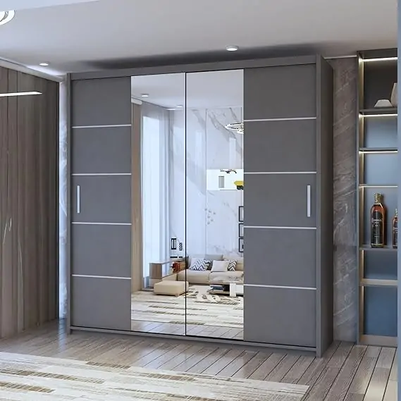 The LISBON Sliding Door Wardrobe epitomizes luxurious living and is the ultimate package with a price tag affordable for most! The length mirror on this wardrobe not only adds light to your bedroom but creates the illusion of enlarged bedroom space. The elegant horizontal paneled door further adds to this wardrobe’s beauty and also creates a calm, tranquil aura – perfect when you want your bedroom as a place where you can escape the hassle and bustle of the day! The Lisbon Sliding Wardrobe is equivalent to 4 single wardrobes. It boasts 8 huge cubed storage shelves, plus another 2 suitcase-size shelves on top. So there’s more than enough room for all your clothes, as well as bedding, boots, and storage boxes. This wardrobe also benefits from the high-quality sliding mechanism and you would barely hear any noise with the smooth gliding motion of the doors. It is crafted from 16 mm laminated particle board to give you beauty, stability, and durability all in one! Add extra hanging rails and you can configure this wardrobe in different ways (refer to images).