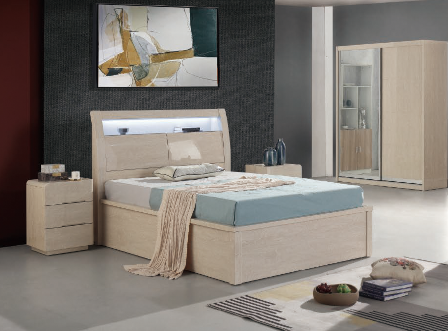 Rugby LED High Gloss Bedroom Set